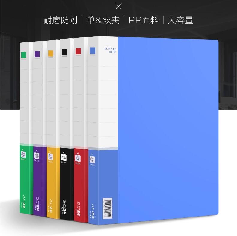 正彩文件夾辦公用品A4雙強力夾子資料夾板插頁冊功能單夾多層文件袋資料冊收納盒學(xué)生用板夾透明