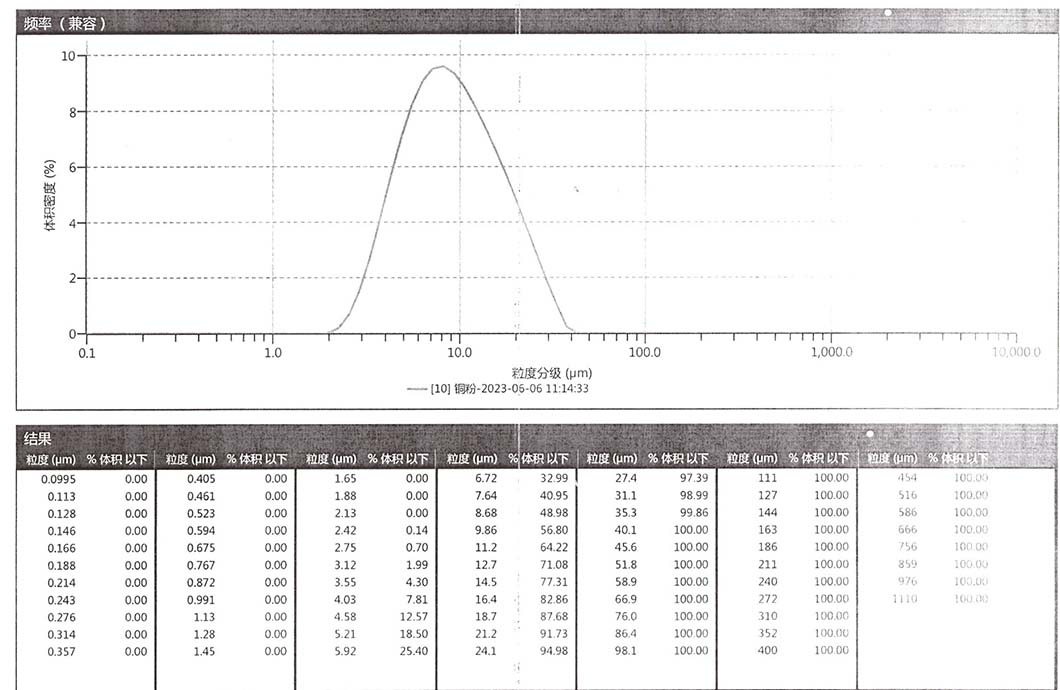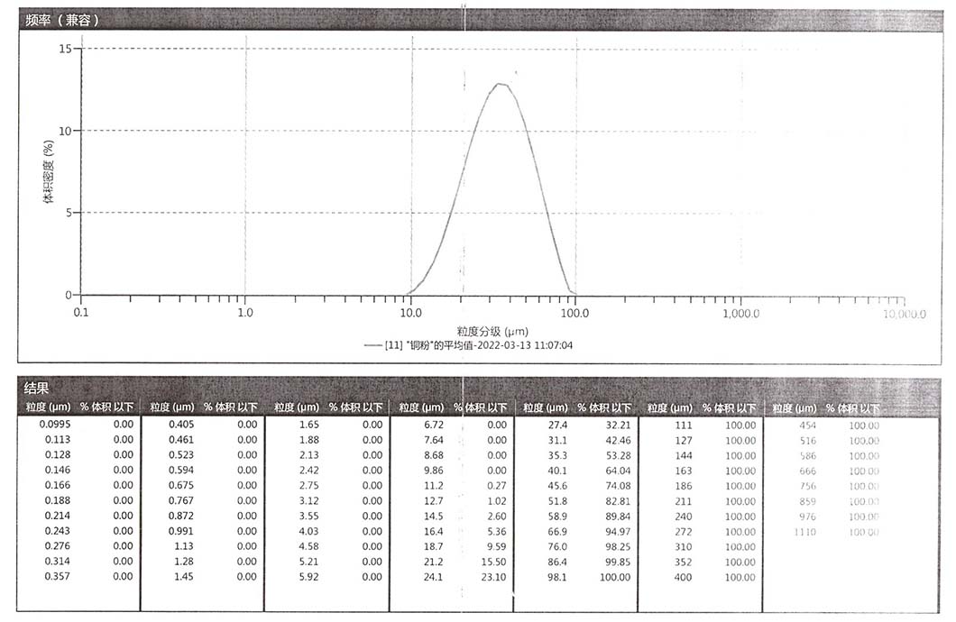 進料細度:閃蒸烘干后電解銅粉